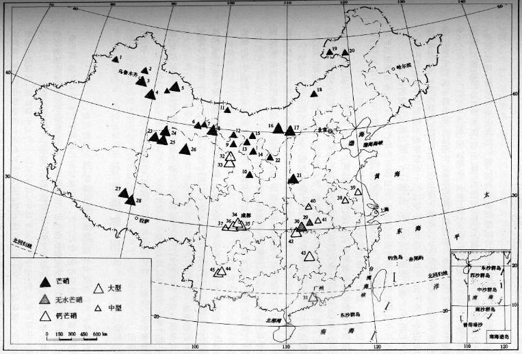 | 中国的芒硝矿资源极为丰富,是优势矿产之一,储量居世界首位。截至1996年底,中国已探明芒硝类矿产地124处,其中包括以矿石量计62处的保有储量221.12亿t和以Na2SO4计62处的保有储量105.32亿t;资源总量达300亿t(Na2SO4量),资源潜在价值17 760亿元人民币。中国芒硝矿储量最丰富的省(区)主要为青海、四川、内蒙古、云南、新疆、湖北和湖南等(表4.6.5和4.6.6)。无水芒硝(Na2SO4)又称元明粉,它是用途很广的化工原料。用于硫化钠、群青、硅酸钠等化工产品的制造,造纸工业中用于制造硫酸盐纸浆,玻璃工业中用来代替纯碱,洗涤剂工业(主要是洗衣粉)中作填充剂,印染工业中用作助染剂,医药工业中用作缓泻剂和钡盐中毒的解毒剂等。 |